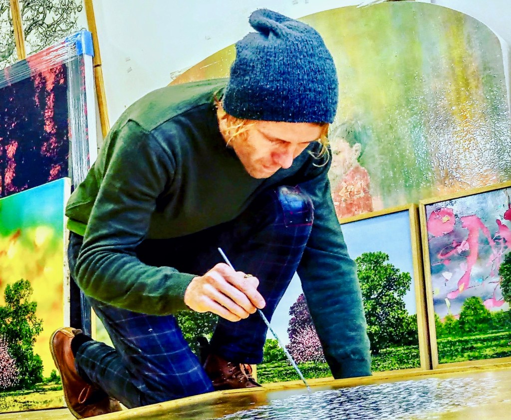 Is a British artist working within the traditions of painting, drawing, sculpture and printmaking. A graduate of KIAD and The Glasgow School of Art, his dark figurative landscapes with ambiguous narratives are amplified with a synthetic spectral use of colour. With their lyrical subjectivity and epic monumentality they echo the language of master painting in a haunting and profound way. His work explores emotive contemporary questions regarding the transcendent nature and timeless aspects of the human condition.