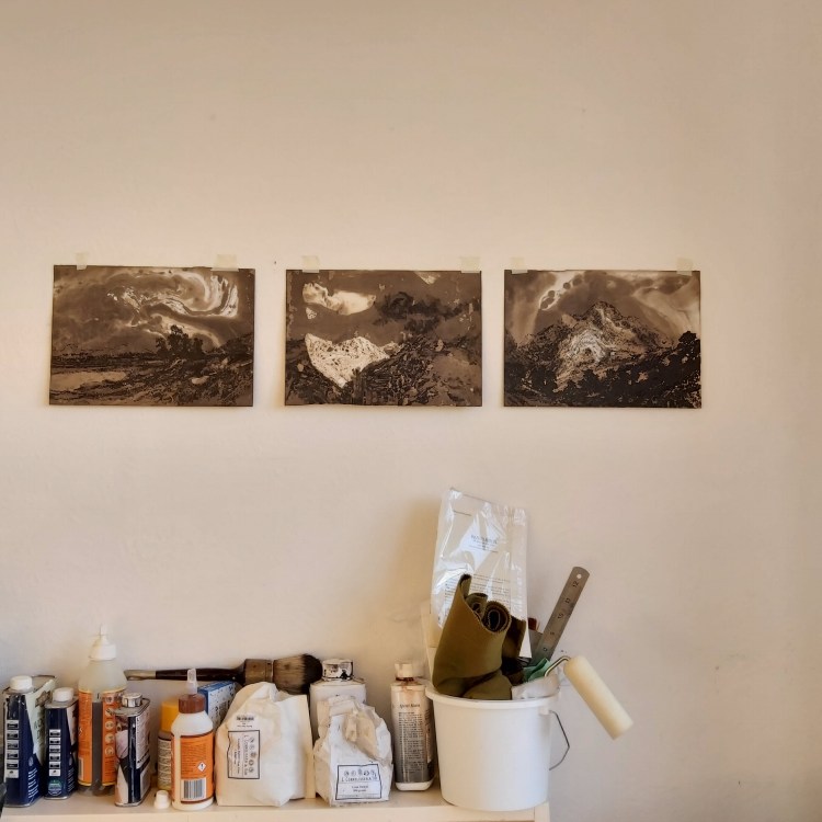 Romantic sublime, study, Ink on paper tryptch 30cm x 21cm