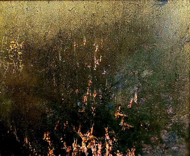 Soul Flight, Oil/acylic and Gold leaf on canvas, 45cm x 47cm