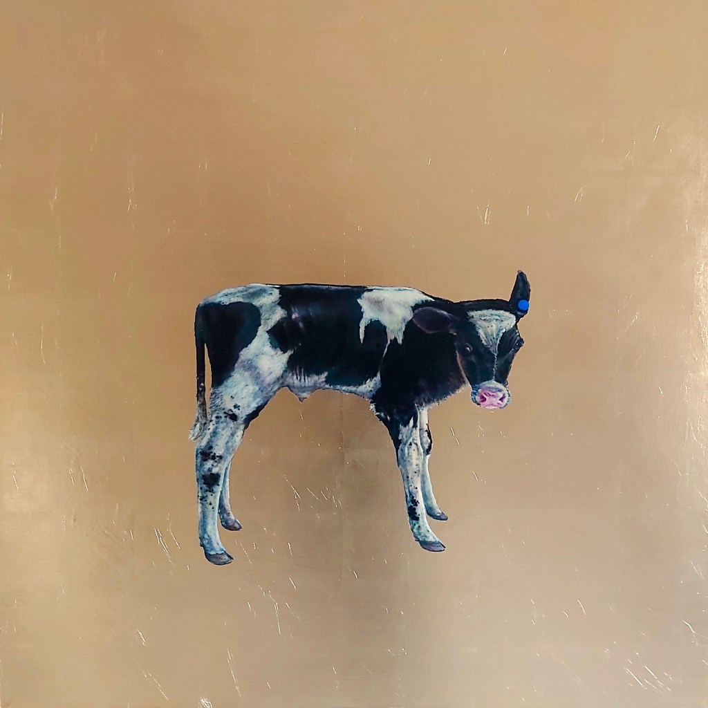 Golden Calf, Oil and Gold leaf on canvas, 154cm x 154cmMargate Sands, Oil on Silver Leaf, 120cm x 95cm (on loan Markel International, Walkie Talkie building, London)