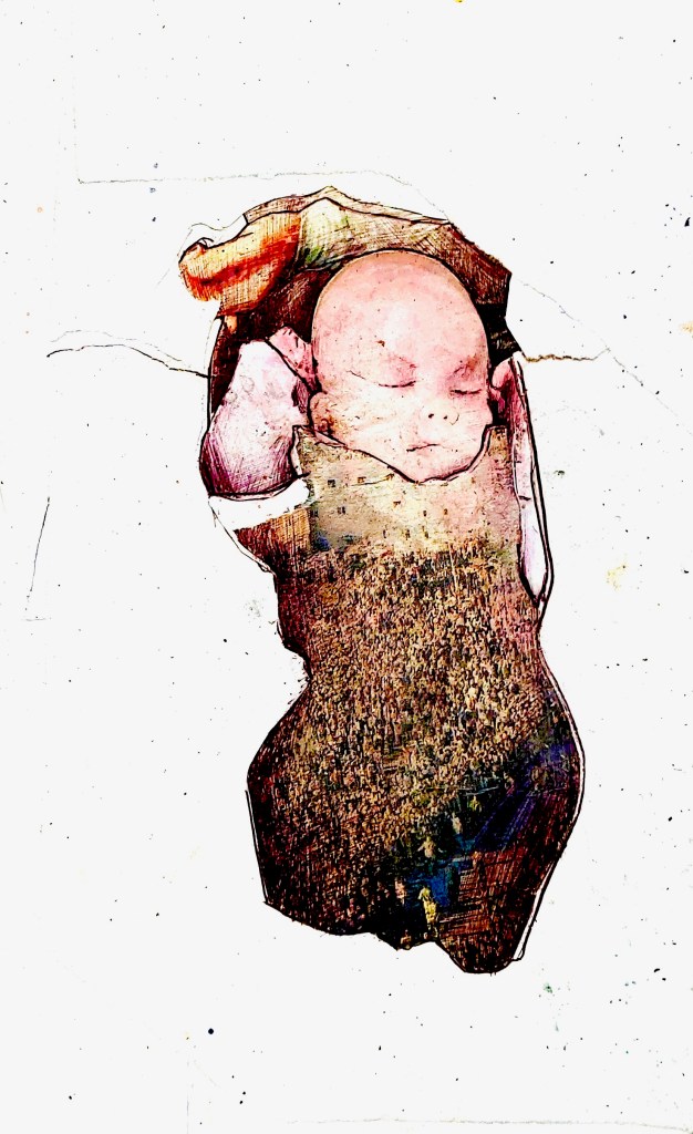 Anthropocene Trinity, oil/Acrylic on canvas, 140cm x 100cm
